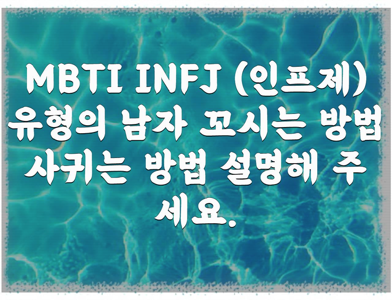정리드린 내용은 MBTI INFJ (인프제)유형의 남자 꼬시는 방법 사귀는 방법 설명해 주세요. 입니다. 상기 글이 도움이 되셨길 바랍니다.